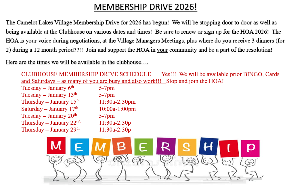 Bring your canned goods or dry goods to Clubhouse Kitchen. Please check dates for no expired items. Directors of the HOA will keep watch over these items.